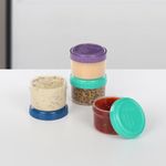 Este set de cuatro contenedores miniatura es la solución ideal para transportar aliños, salsas y condimentos de forma individual y segura. Cada recipiente cuenta con una tapa de rosca en colores vibrantes que garantiza un cierre hermético, evitando derrames accidentales en loncheras o bolsos. Su cuerpo transparente permite identificar el contenido rápidamente, facilitando la organización de porciones precisas de vinagretas, mayonesas o snacks pequeños para acompañar tus comidas fuera de casa.