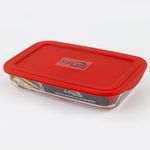 Refractaria de 0.7l litros rectangular de medidas: 23x15x4.8 cm, en vidrio alto borosilicato que resiste hasta 230 grados celcius. Los materiales del producto son inodoros, saludables y duraderos