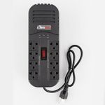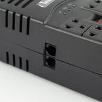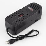 CARACTERISTICAS: * Conmutación de 8ms. *Topología a base de relevos. *Cuenta con 8 salidas. APLICACIONES *Sistemas de audio, TV & video. *Impresoras, escáneres y faxes. *Electrodomésticos. *Sistemas de cómputo. Voltiamperios: 1.000 VA Watts: 320W Voltaje de Entrada: 95VAC - 150VAC Voltaje de Salida: 106VAC - 133VAC Frecuencia: 60Hz Supresores: 1100J Cable Polo a Tierra: 66cms Tomas de Salida: 4 reguladas + 4 Bypass