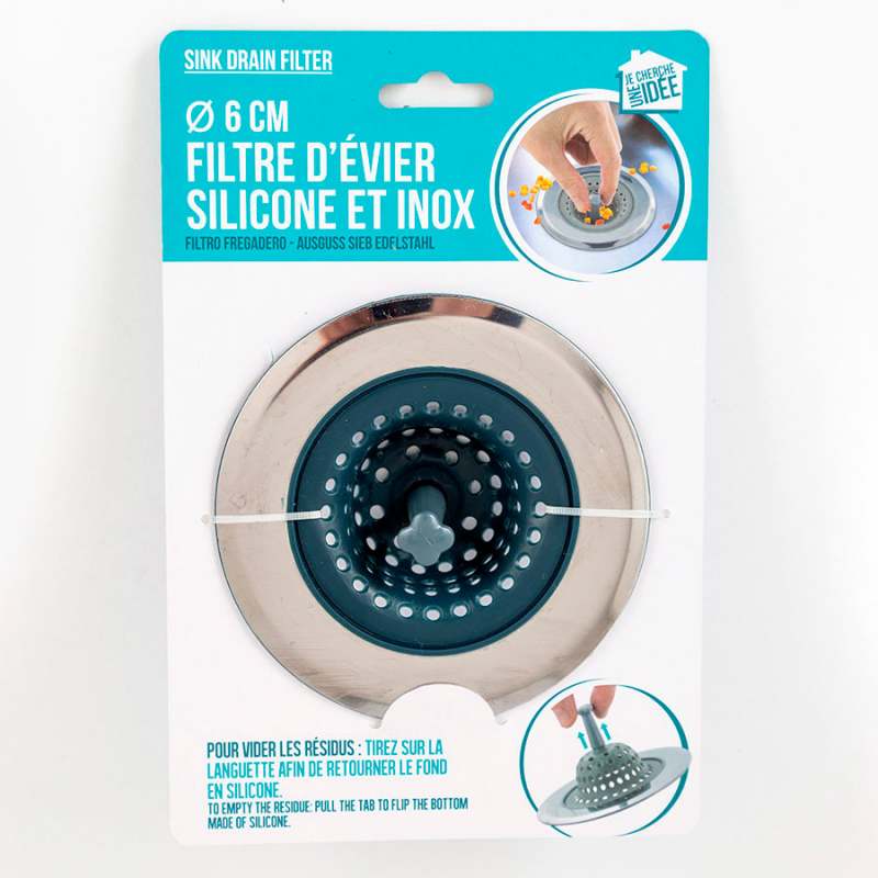 Rejilla je cherche me2550 para lavaplatos en silicona y acero inoxidable gris. Este colador de fregadero fabricado en silicona y acero inoxidable le ahorrará muchos problemas. Para colocar sobre el desagüe, dispone de un ingenioso sistema de vaciado integrado. Práctico, flexible e higiénico. El filtro retiene todos los residuos gris 11x4x11 cm 50 % elastómero.
