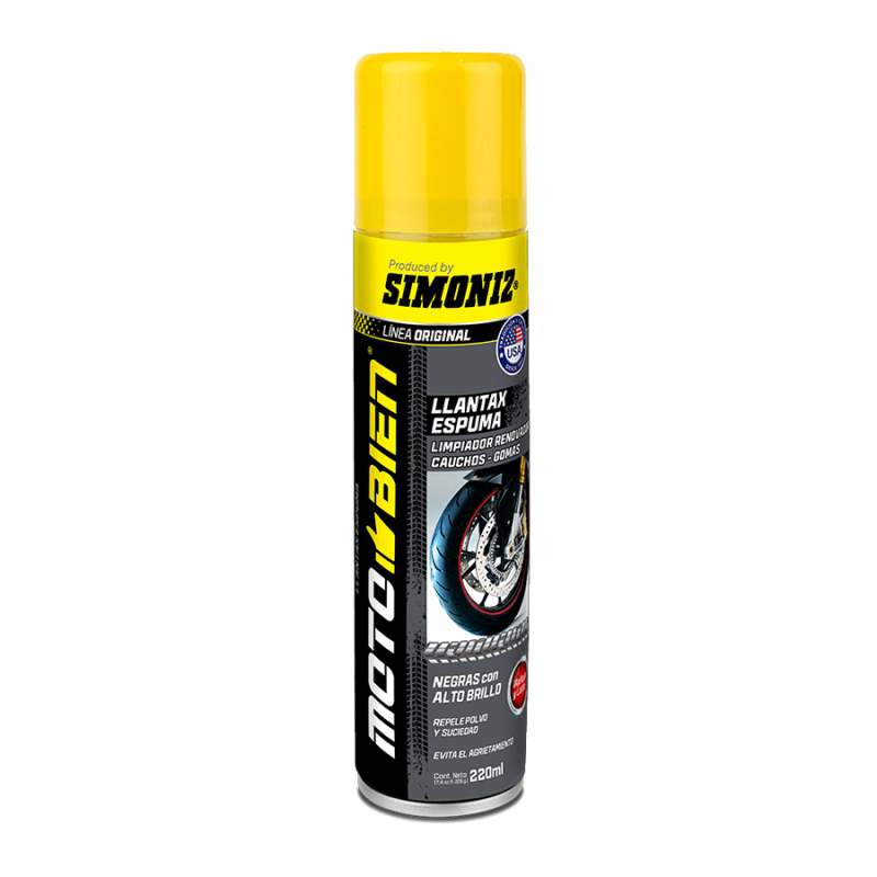 Es una fórmula desarrollada para renovar, proteger y dar brillo a las llantas, gomas, neumáticos y cauchos de su moto. Simplemente aplique la espuma permitiendo que actúe sola y sin necesidad de frotar, dejando las superficies limpias, brillantes y como nuevas.