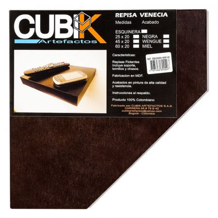 Repisa Esquinera Cubik REV25X25W Se trata de tu hogar, el principal y único espacio íntimo donde se convive tanto con familiares como con colegas del trabajo o de estudio. Por ello, es costumbre dedicarle una cantidad de tiempo adicional para lograr dar con los mejores productos para así mantenerla: aquellos que reúnen calidad, durabilidad y utilidad. El mejor amigo de cada hogar son todos los productos, herramientas, utensilios o artefactos que permiten realizar más fácil las tareas cotidianas, por otra parte, complementan el estilo y decoración de tu hogar. Los accesorios para tu hogar son importantes para que encuentres confort y seguridad al estar con quienes más amas; es por ello que debes asegurarte de tener la mejor calidad en cada uno de sus detalles. Repisa esquinera elaborada en mdf, , cuenta con unas medidas de 25 x 25 cms, es práctica. Ideal para todo tipo de espacio, es flotante, evita que se vean tornillos o chazos en la pared, tiene acabados en pintura de alta calidad y resistencia. Producto elaborado en Colombia. Siempre se recomienda tomarse el tiempo necesario para hacer una buena elección de los productos que utilizaremos en nuestro hogar, y esta marca se distingue por la calidad y utilidad de sus productos, No te arrepentirás, sin duda alguna, de tu elección. Repisa esquinera elaborada en mdf Medidas de 25,0 x 25,0 x 3,0, es práctica Ideal para todo tipo de espacio Es flotante Evita que se vean tornillos o chazos en la pared