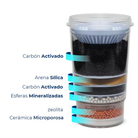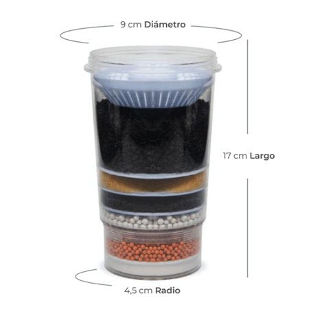 Antes de Comprar: - Verifica la compatibilidad: Este cilindro solo es compatible con filtros Ecotrade Filters 21-24-28 Litros y Ecofilter 21-24-28 Litros. No garantizamos la funcionalidad con filtros de otras marcas. - Confirma la capacidad de tu filtro: Si no conoces la capacidad de tu filtro, NO lo compres. - Repuestos: Asegúrate de verificar que el cilindro sea adecuado para tu modelo de filtro antes de utilizarlo. Description del Producto: Este cilindro multicapa está diseñado para purificar y mineralizar el agua, transformándola en agua natural, alcalina y enriquecida con minerales. Proporciona un agua de alta calidad, al 99.9% de pureza, ideal para mejorar tu salud y bienestar. Componentes y Beneficios: 1. Filtrado con Carbón Activado (Doble Capa): - El carbón activado elimina compuestos orgánicos, olores, colores, sabores, cloro, detergentes y químicos indeseables. - Atrapando y eliminando toxinas de tu agua, protege tu salud al prevenir enfermedades causadas por impurezas. 2. Enriquecimiento con Esferas Mineralizadas: - Las esferas mineralizadas proporcionan minerales esenciales que ayudan a mantener el equilibrio del pH de los fluidos del cuerpo, mejorando la absorción celular y promoviendo la salud en general. 3. **Filtrado con Arena Silica:** - El proceso de filtrado con arena sílica retira los ácidos del agua, mejorando su calidad. 4. **Filtro de Zeolita:** - Alcaliniza el agua, haciéndola más ligera y suave, y elimina metales pesados como plomo, mercurio, hierro y aluminio, lo que mejora la calidad del agua. 5. **Doble Capa de Filtro Cerámica Micro-Porosa:** - Retiene sedimentos y cloro, proporcionando una filtración profunda que asegura agua más limpia. ### **Medidas del Cilindro:** - **Altura:** 17 centímetros. ### **Recomendaciones de Uso:** - **Verifica la capacidad de tu filtro** antes de comprar este cilindro. - **Reemplazo:** El cilindro tiene una duración de entre 6 y 12 meses, dependiendo de las condiciones del agua y el uso. Este cilindro multicapa es una excelente opción para purificar y alcalinizar el agua, mejorando su sabor, calidad y tus beneficios de salud. Con su proceso de filtración avanzado y enriquecimiento mineral, garantiza que el agua que consumes esté libre de contaminantes y rica en minerales esenciales.