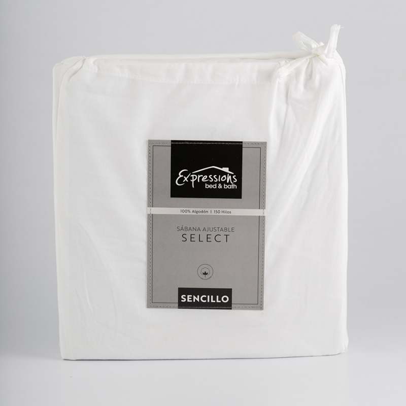 Sabana Ajustable Expressions 150H Sencillo Blanco 100% Algodón