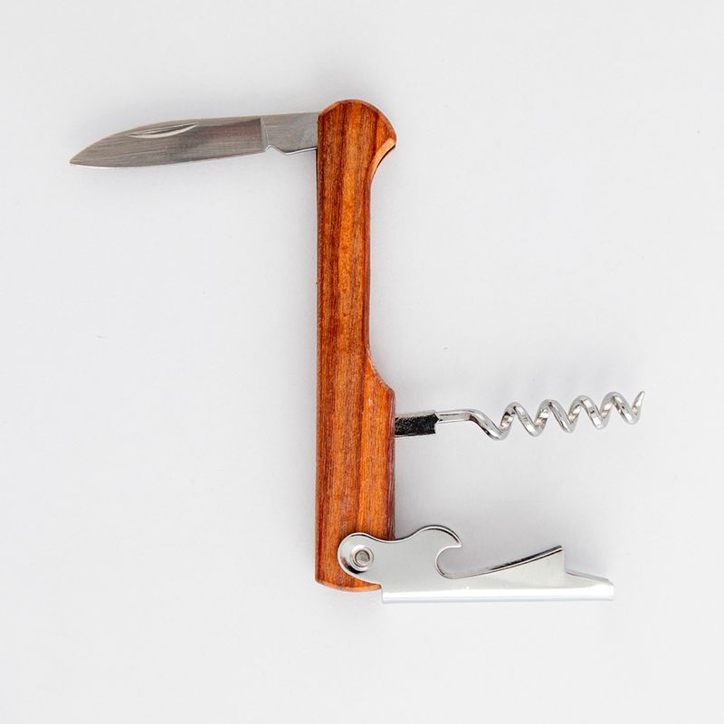 El sacacorcho C8062 de Excellent Houseware es un utensilio compacto de 2 cm de ancho, elaborado en acero inoxidable con acabado marrón, diseñado para ofrecer resistencia y durabilidad. Su estructura práctica y funcional permite abrir botellas de vino de forma sencilla, incorporando además funciones adicionales como destapador y cortacápsulas, lo que lo convierte en una herramienta versátil para el hogar. Su tamaño compacto facilita el manejo y almacenamiento, siendo ideal para uso doméstico o reuniones.