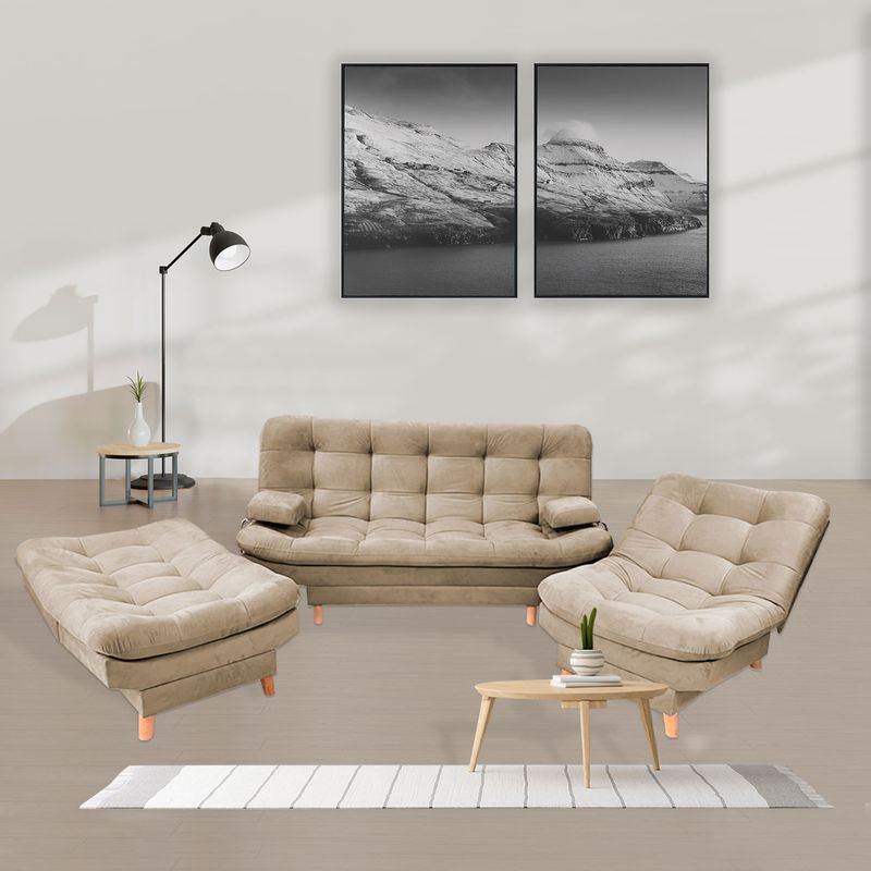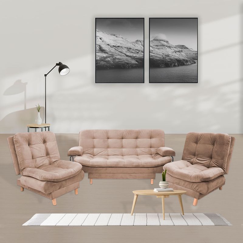 Sala Clic Clac 175x90cm incluye dos sillas y un sofá cama 3 posiciones Camel