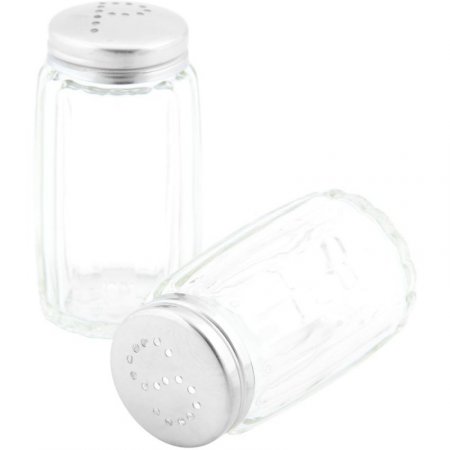 Incluye: salero y pimentero. Tapa en acero inoxidable. Cuerpo envase: vidrio. Diseño: líneas repujadas. Resistente a golpes.