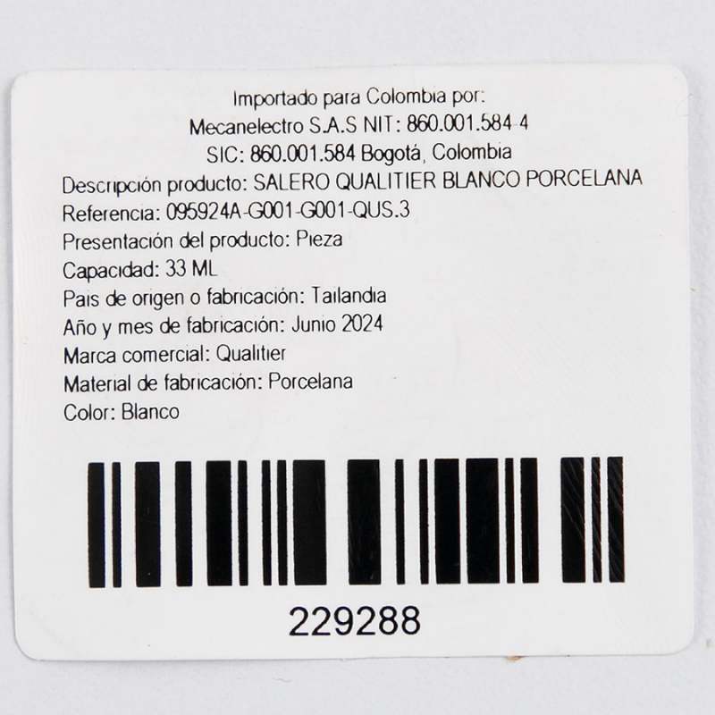 Salero Qualitier Blanco Porcelana Material: Fabricado en porcelana, un material duradero, resistente y elegante que no altera el sabor del contenido y es fácil de limpiar. Diseño clásico: Su color blanco y estilo lo hacen perfecto para combinar con cualquier tipo de vajilla y decoración.