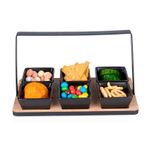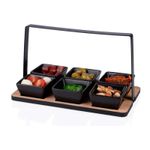 Salseras 7 piezas con bandeja. Marca: Alpina. Medidas: 14x24x14cm. Material: Bambu. Capacidad: 130ml c/u. Peso: 0,843Kg. Atributos adicionales: Diseño ergonomico. Facil de usar. Sirve para servir cualquier tipo de comida. Facil de limpiar.