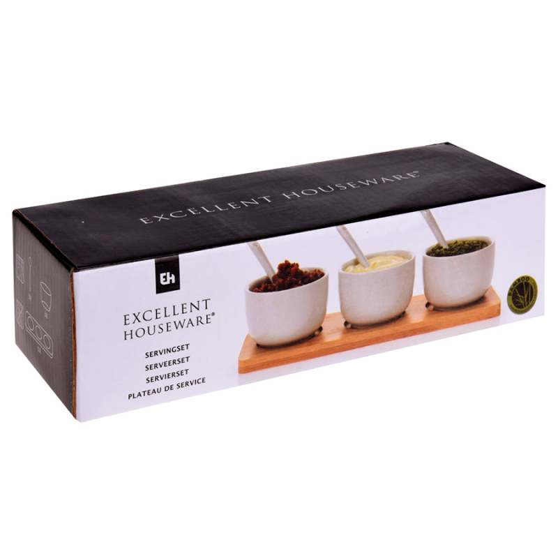 Salseras setx7.Marca: Excellent houseware. Material: porcelana y bambu. Color: blanco. Medidas: 6,5x4,5cm con cuchara de porcelana de 10cm y soporte de bambu.