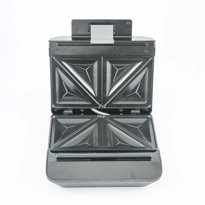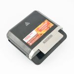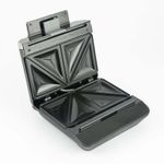 Ideal para preparar sándwiches calientes y crujientes de forma rápida y eficiente. Cuenta con 750 W de potencia, placas antiadherentes duraderas, luz indicadora de encendido y listo, y clip de bloqueo que sella y corta el sándwich al cerrarlo. Su diseño compacto y elegante en color negro facilita su almacenamiento vertical y limpieza sencilla. Incluye manual de uso.