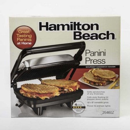 Prepara paninis y sándwiches como los profesionales en esta útil parrilla eléctrica Hamilton Beach que HOME SENTRY trae para enriquecer tu creatividad culinaria y sorprender deliciosamente a tus seres queridos• Hace paninis y sándwiches a la parrilla de cualquier grosor• Tapa flotante tipo cafetería que presiona uniformemente sandwiches de cualquier tamaño• Rejillas antiadherentes de 25,4 x 20,3 cm• Luces de encendido y precalentado• Almacenamiento vertical que ahorra espacio• Características eléctricas: 120 Vac – 1400 W• Garantía de 1 añoIncluyeParrilla electrica Instrucciones de usoPara uso doméstico exclusivamente