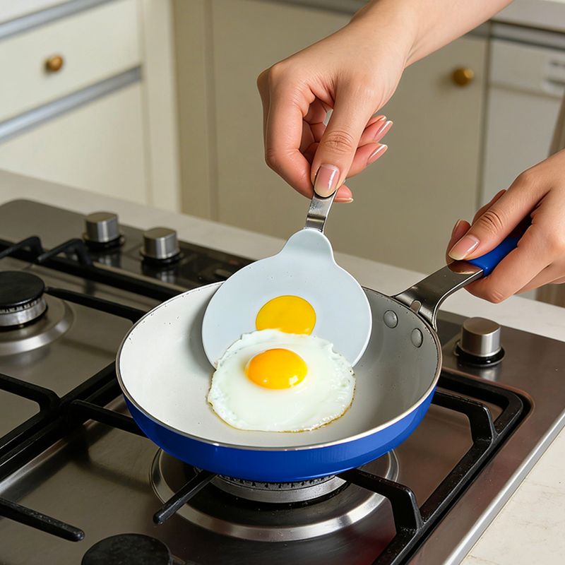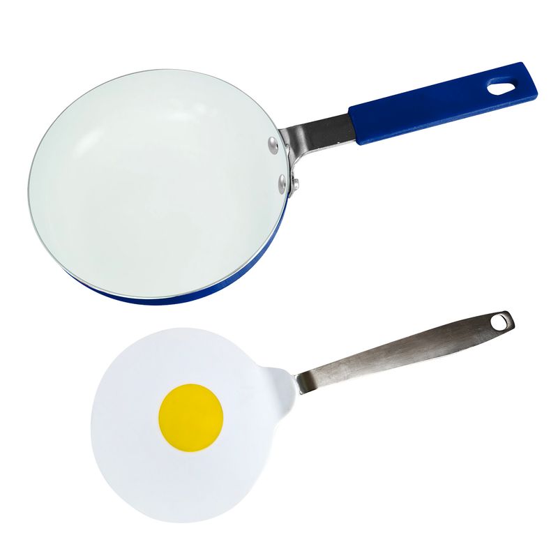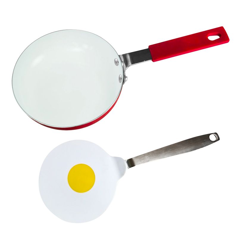 Accesorios para la cocina En Home Sentry trabajamos día a día por tu bienestar, por eso junto a BC Classics hemos puesto al alcance de tu mano un amplio catálogo de accesorios, para que puedan suplir cada necesidad, ofreciéndote lo mejor para garantizarte calidad y seguridad. Sartén para huevos Este característico sartén con espátula ha sido fabricado con los más altos estándares de calidad y elaborado en metal, que harán de este el complemento perfecto para tu hogar y su cuidado, gracias a su exclusivo diseño y novedosas funcionalidades. Material: metal. Sartén para el huevo. Mango siliconado. Espátula para el huevo con forma de huevo frito. Color sujeto a disponibilidad.