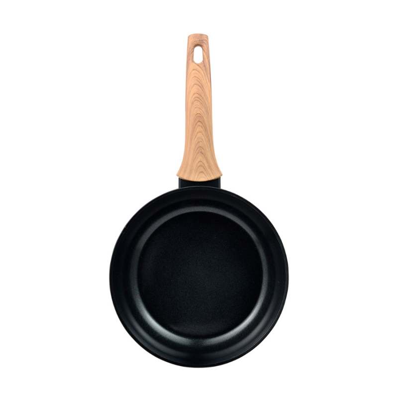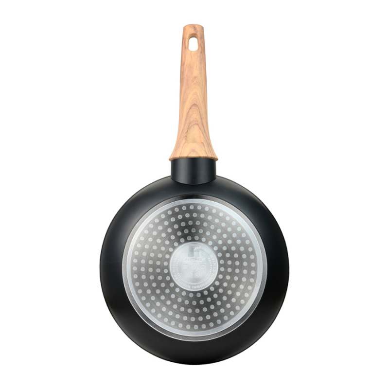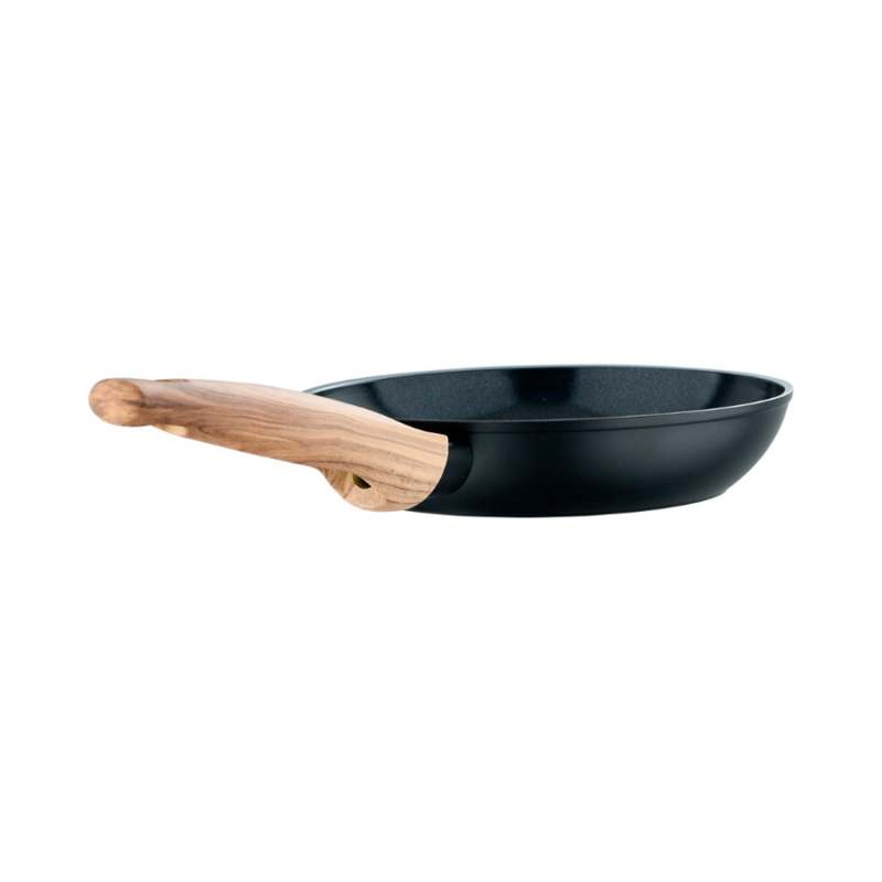Sartén Negro 24 cm, fabricado en aluminio forjado de doble capa con antiadherente cerámico ppg fusión libre de tóxicos (pfas free), mango baquelita con tecnología cool-soft touch acabado tipo madera. base de inducción con partículas de acero apta para todas las cocinas (gas, vitro, inducción, eléctrica), resiste a arañazos y corrosión. Colección fusión destacada por su espectacular estética y la funcionalidad donde se encuentran para destacar la elegancia en lo simple y encontrar el lujo en lo esencial. combinando la sobriedad del negro con la calidez de la madera. es la representación de sofisticación y elegancia para los que aprecian la belleza en los detalles. es el punto de encuentro entre mundos que antes parecían opuestos y el abrazo entre lo tradicional e innovador para crear una experiencia extraordinaria.