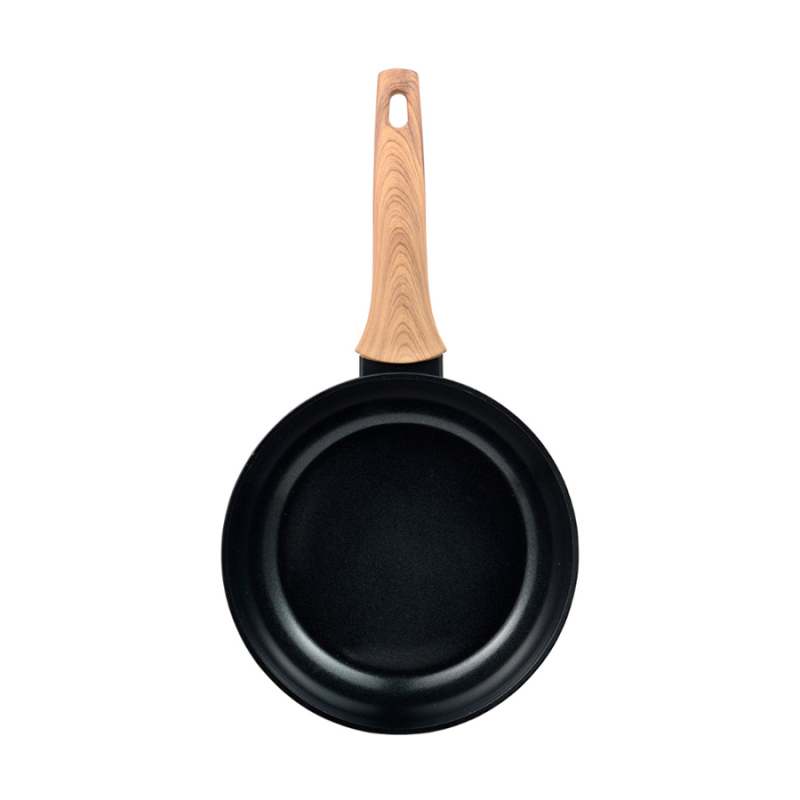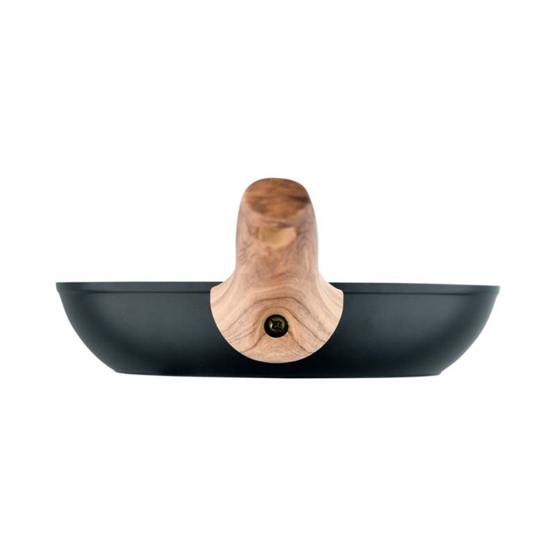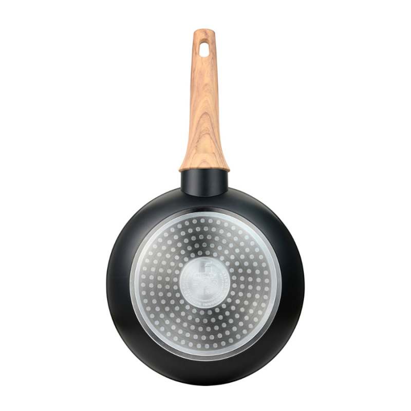 Sartén Negro 28 cm, fabricado en aluminio forjado de doble capa con antiadherente cerámico ppg fusión libre de tóxicos (pfas free), mango baquelita con tecnología cool-soft touch acabado tipo madera. base de inducción con partículas de acero apta para todas las cocinas ( gas, vitro, inducción, eléctrica), resiste a arañazos y corrosión. Colección fusión destacada por su espectacular estética y la funcionalidad donde se encuentran para destacar la elegancia en lo simple y encontrar el lujo en lo esencial. combinando la sobriedad del negro con la calidez de la madera. es la representación de sofisticación y elegancia para los que aprecian la belleza en los detalles. es el punto de encuentro entre mundos que antes parecían opuestos y el abrazo entre lo tradicional e innovador para crear una experiencia extraordinaria.