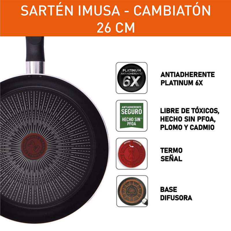 CocinaCocciónSartén AluminioSarten Con Tapa Imusa Platinum 26 Cm Negro Antiadherente 58610364