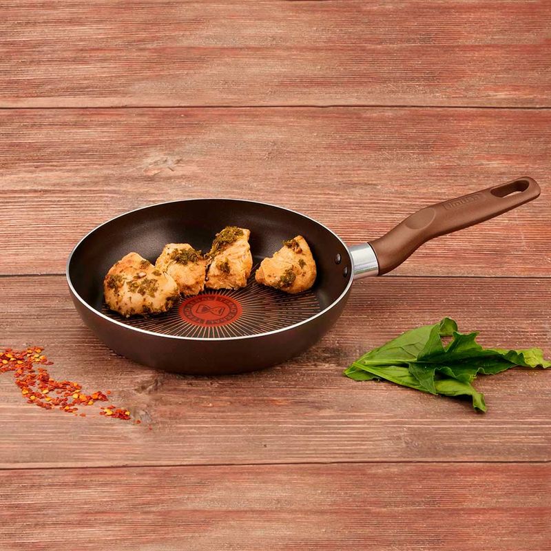 Esta pieza combina un diseño sofisticado con un rendimiento superior para transformar la experiencia en la cocina. Presenta un elegante acabado color café tanto en su exterior como en su interior, decorado con un delicado silkscreen dorado que aporta un estilo distintivo. Equipada con el innovador antiadherente 5X Gold, garantiza una resistencia y durabilidad excepcionales, permitiendo cocinar de forma saludable con menos grasa sin que los alimentos se peguen. Además, integra la tecnología Termo Señal, que indica el momento exacto para iniciar la cocción, y una base difusora que asegura una distribución uniforme del calor para resultados homogéneos.