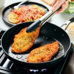 Sartén 31 cm, Negro Onix, elaborado con aluminio anodizado duro, de alta calidad 8 veces más fuerte que el aluminio tradicional, triple capa de antiadherente anodizado duro que cubre incluso los remaches para un rápido desprendimiento de los alimentos y una limpieza sin esfuerzo, permitiendo mantenerla como nueva durante más tiempo. Mango de acero inoxidable con recubrimiento en silicona con doble remache para un agarre seguro, se mantiene frío durante la cocción en la estufa. Hacer un adecuado uso en el horno hasta la temperatura indicada para el producto o parte de este. Apto para cocinas de gas, eléctricas, vitrocerámica y horno hasta 204 °C. No Apta para: - Otros usos diferentes a la cocción y preparación de alimentos. - No exponer a sobrecalentamiento por el uso de los productos con una fuente de calor incompatible o nivel excesivo. - No use productos químicos o limpiadores abrasivos. - Evite el uso de utensilios metálicos o inadecuados con borde afilado.