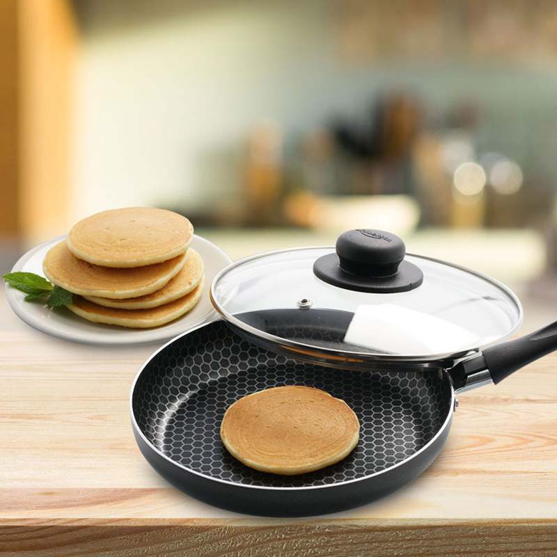 Nuestro sartén es ideal para preparar recetas saludables y bajas en grasa, no esperes más para hacerlo parte de tu cocina. Aluminio de 1.6 mm, Cuerpo en aluminio recubierto en el interior con antiadherente estampado 6 ultra. Mango en baquelita resistente al calor,Tapa en vidrio templado de espesor 1 mm, Pomo en polipropileno.Fondo grafilado para mayor estabilidad al cocinar y mejor distribución de calor en la base. Garantía de 1 año. Tamaño 18 cm de ancho.