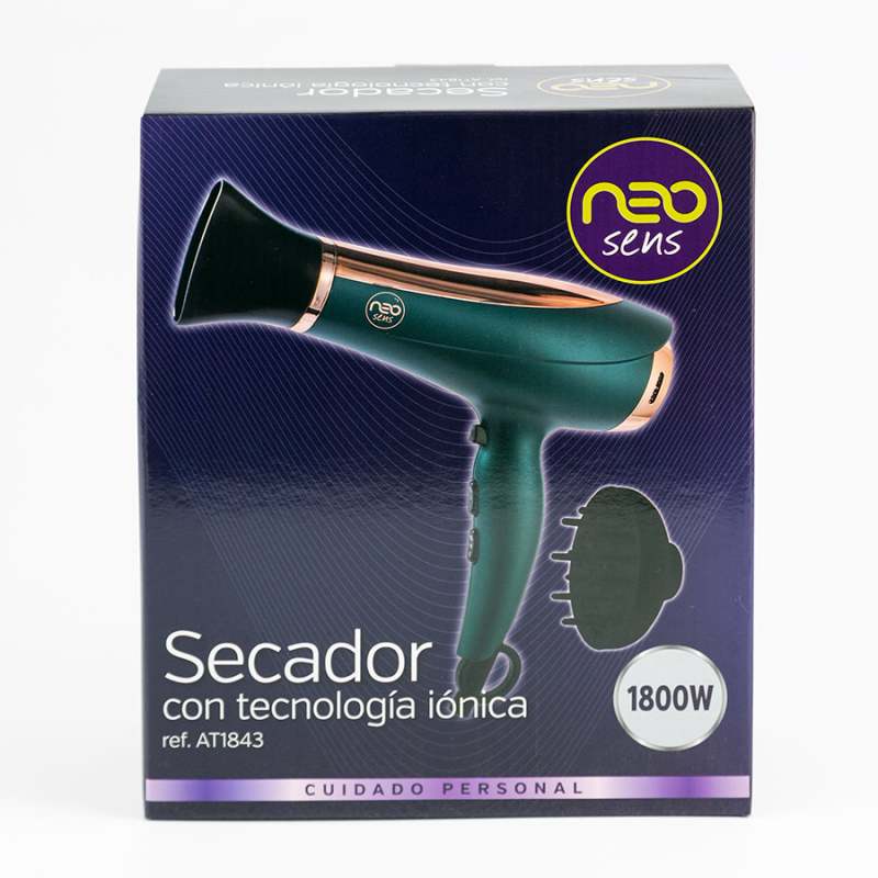 Secador con Tecnología Iónica; Este secador cuenta con Tecnología Ionica para un cabello brillante y saludable, previniendo el daño por el calor. Su funcionamiento hace que las nubes de iones cargadas negativamente neutralicen las cargas positivas que están en el aire y reduzcan la electricidad estática que provoca el frizz y el cabello opaco, volviendo más brillante y manejable. Características - Componentes: • Tecnología iónica menos frizz y mejor control del pelo. • Boquilla de precisión. • Difusor para pelo rizado o texturizado. • Botón de aire frio. • 2 velocidades / ajustes de calor. • Gancho para colgar.
