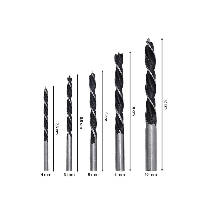 El Set de 5 Brocas para Madera incluye tamaños de 4, 5, 6, 8 y 10 mm, ideales para perforar madera con precisión. Su punta centradora asegura perforaciones exactas. Fabricadas en acero carbono de alta calidad, estas brocas son compatibles con la mayoría de los taladros y son perfectas para proyectos domésticos. ¡Haz que tus tareas de perforación sean más fáciles y eficientes con este set práctico y duradero!