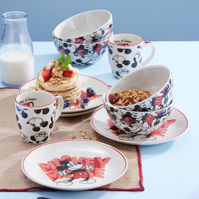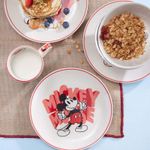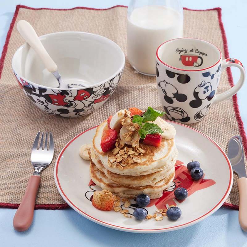 Empieza el día con una sonrisa de tu pequeño con este divertido Set de Desayuno de Mickey Mouse. Este colorido set incluye un bowl, plato y mug ¡Perfecto cualquier comida del día! Fabricado en cerámica, apto para microondas y lavavajillas. - Apto para microondas y lavavajilla. - Cumple con la norma de plomo y cadmio. - Resistencia de la decoración a los detergentes. - Aprobado para el uso en contacto con alimentos. - Se garantiza que el esmalte no va a generar agrietamiento por cualquier cantidad de lavado con detergentes.