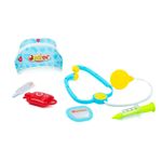 Set de doctor en maletín plástico con 8 piezas, Incluye estetoscopio, jeringa, termómetro, bolsita de sangre y más.