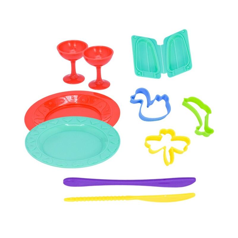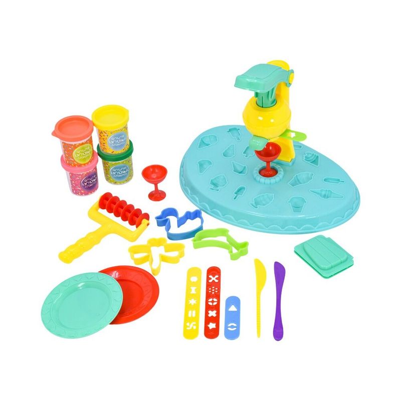 El Set de Masa para Helados Monkey Doh invita a los niños a crear su propia heladería en casa. Incluye prensa para moldear, diferentes moldes y accesorios para preparar helados, cupcakes y postres usando 4 latas de masa moldeable de colores. Mientras juegan, los niños desarrollan la motricidad fina, la imaginación y el juego de imitación, diferenciando colores y formas mientras inventan recetas deliciosas una y otra vez.