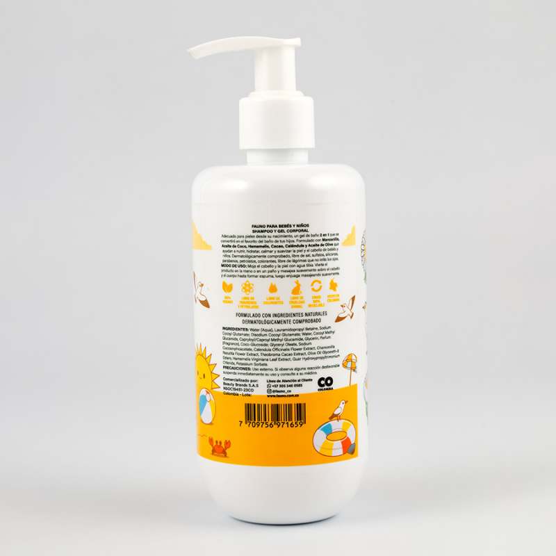 Adecuado para pieles desde su nacimiento, un gel de baño 2 en 1 que se convertirá en el favorito del baño de tus hijos. Formulado con manzanilla, aceite de coco, hamamelis, cacao, calédula y aceite de oliva que ayudan a nutrir, hidratar, calmar y suavizar la piel y el cabello de bebés y niños. Dermatológicamente comprobado, libre de sal, sulfatos, siliconas, parabenos, petrolatos, colorantes, libre de lágrimas que no irrita los ojos. Moja el cabello y la piel con agua tibia. Vierte el producto en la mano a en un paño y masajea suavemente sobre el cabello y el cuerpo hasta formar espuma, luego enjuaga masajeando suavemente.