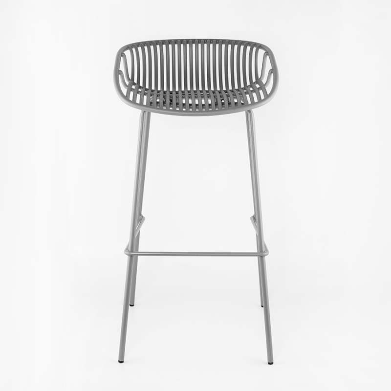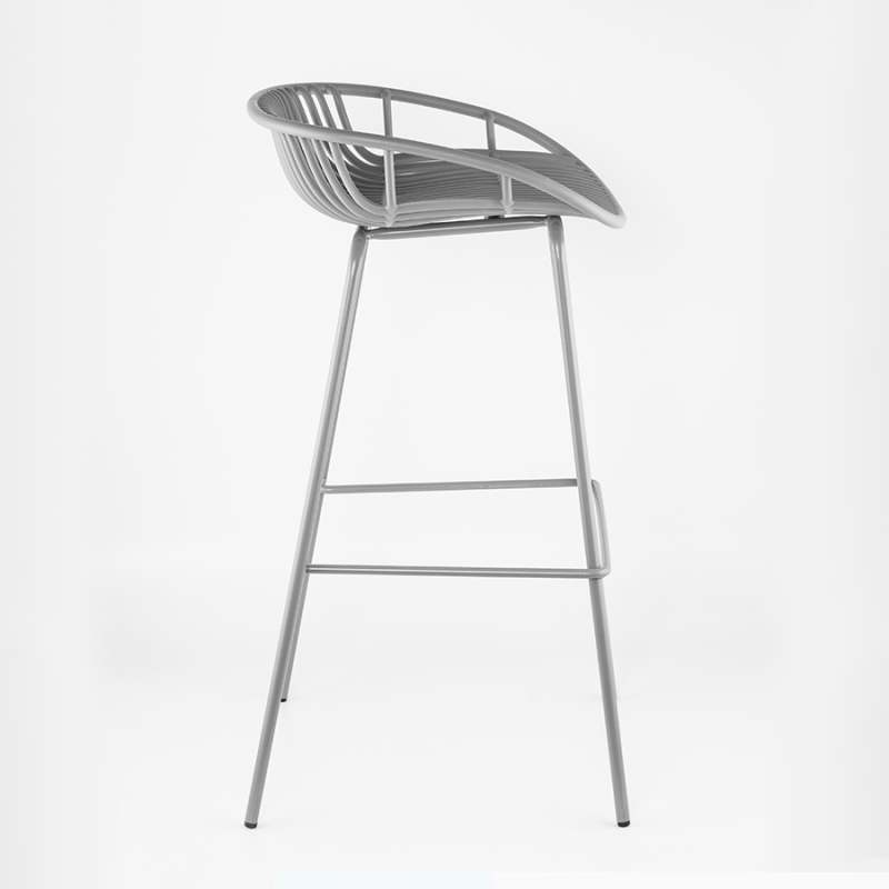 Silla bar Espaldar con diseño de mimbre Marca: Expressions Furniture Materiales sillin/espaldar: Polipropileno Materiales patas: Metal El diseño ergonómico de altura perfecta y asiento curvo apoya bien la espalda del usuario al sentarse y facilita las conversaciones. Color: Gris