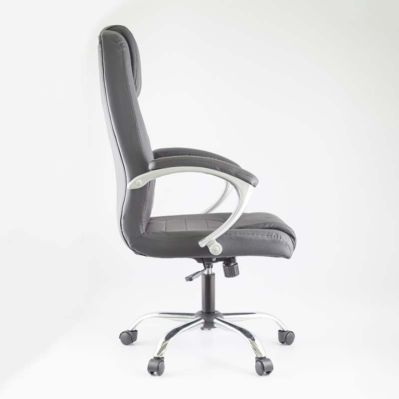 Silla gerencialcon ruedas Expressions MC230214-3 Color: Negra Material estructura: pvc y metal Material tapizado: Cuero PvC Reclinación de 90-135 grados Soporte lumbar Tensión de inclinación con mecanismo de bloqueo Construcción robusta