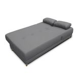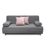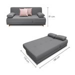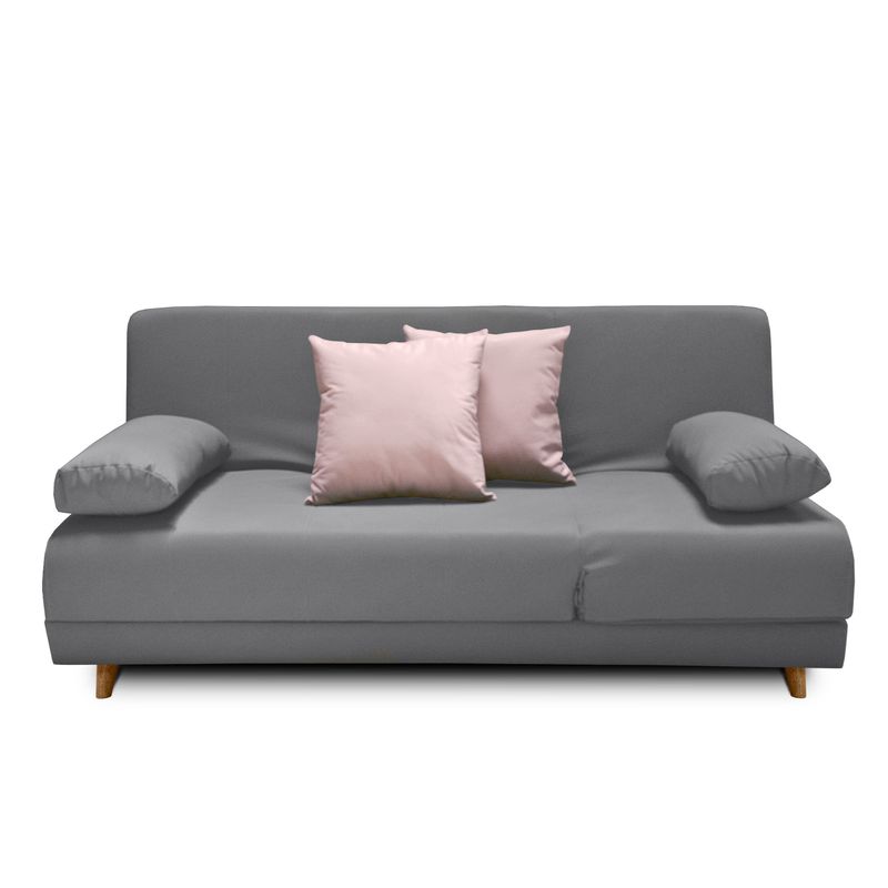 Sofá cama con diseño funcional de 5 posiciones. Ideal para optimizar tus espacios. Tapizado en anti rasguño PVC (No se pela, decolora o resquebraja). Máximo confort, patas en madera y antideslizante especial para evitar daños en el piso. Brazos tipo cojín acompañado de cojines decorativos.