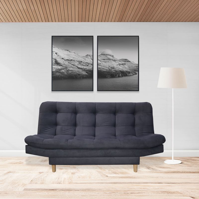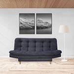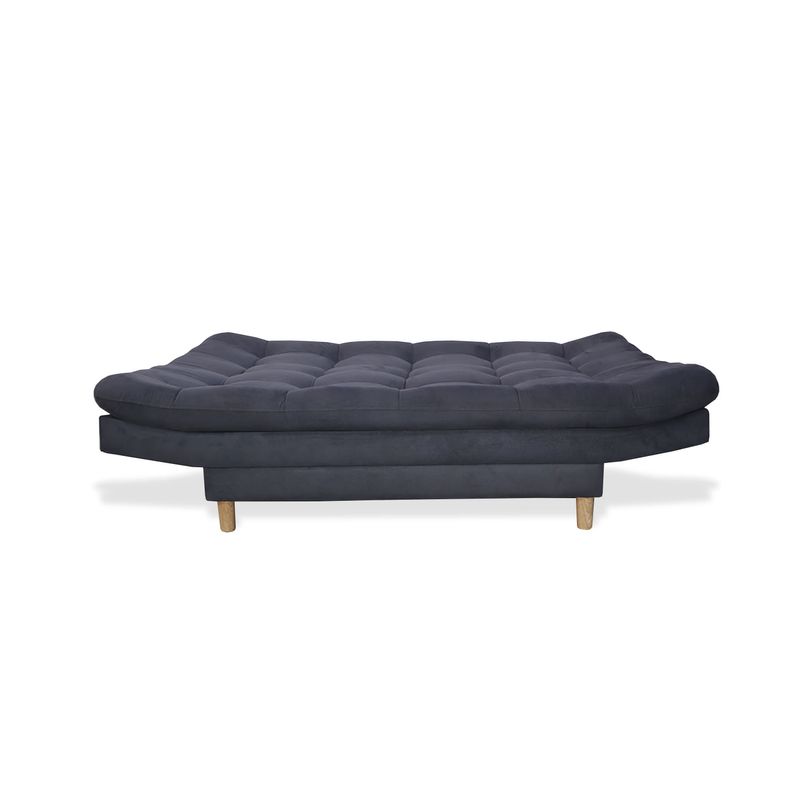 Sofá cama firme de gran confort, excelente soporte, 3 posiciones, tapizado en tela tipo Lino color Gris, patas en madera con antideslizante, estructura en madera Pino-inmunizada y espuma de alta densidad.