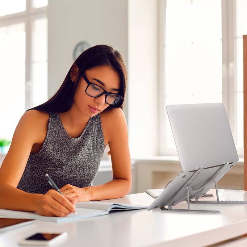 Base plegable para computadores portátiles y Tablets,Con estructura metalica y soportes en goma para proteger los dispositivos de posibles deslizamientos.
