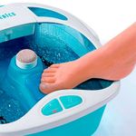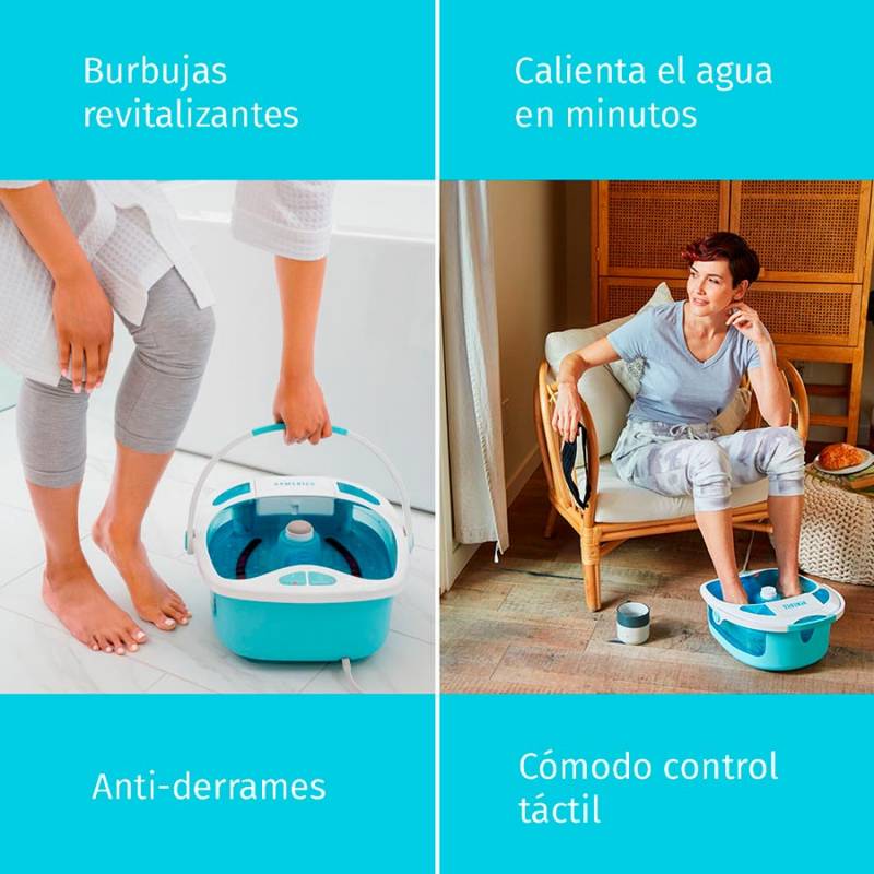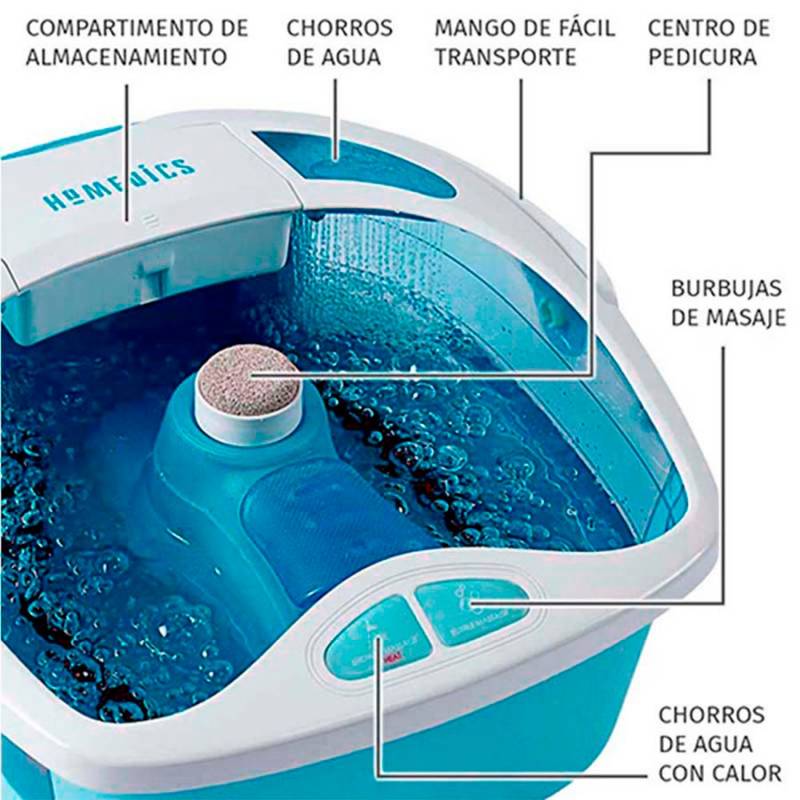 El spa de pies puede transformar agua fría en agua más caliente en pocos minutos, mientras mantiene la temperatura caliente durante todo tu baño.• Centro de pedicura: tres accesorios están incluidos con el spa para pies para la mejor experiencia para los pies, viene con una piedra pómez, cepillo de limpieza y rodillo de masaje. Trabajan para suavizar y suavizar los pies callosos.• Diseño cómodo: el spa para pies proporciona una experiencia cómoda en el baño. La superficie de gel acu-nodo y confort proporciona un apoyo acolchado y un masaje adicional mientras empapa tus pies.• Control táctil: el spa para pies fue diseñado con un cómodo control táctil que te permite ajustar los chorros y la temperatura con tus dedos de los pies, sin tener que llegar a abajo para ajustarlos. También tiene un asa fácil para llevar fácilmente tu baño. Consulte con su médico previamente, no apto para diabéticos, personas con marcapasos o mujeres en estado de embarazo.Garantía directa de fábrica.Uso doméstico.