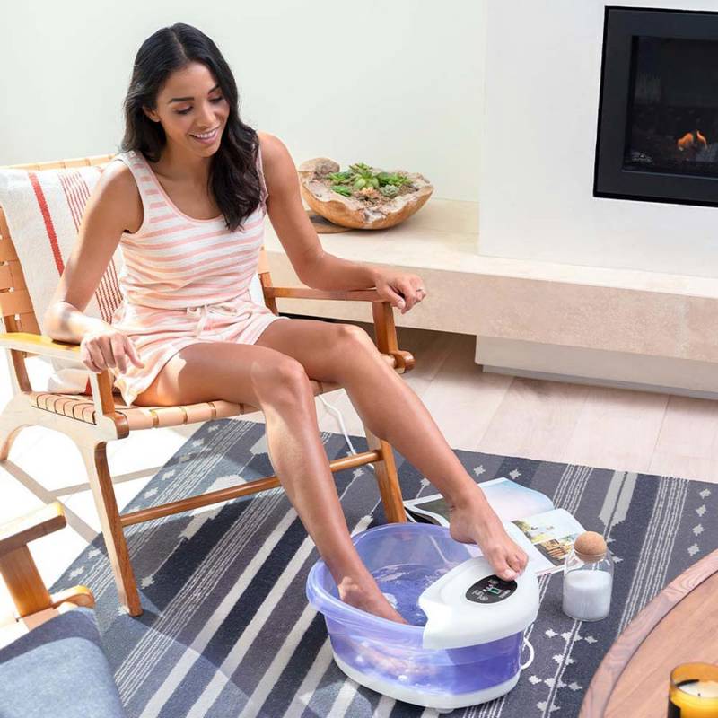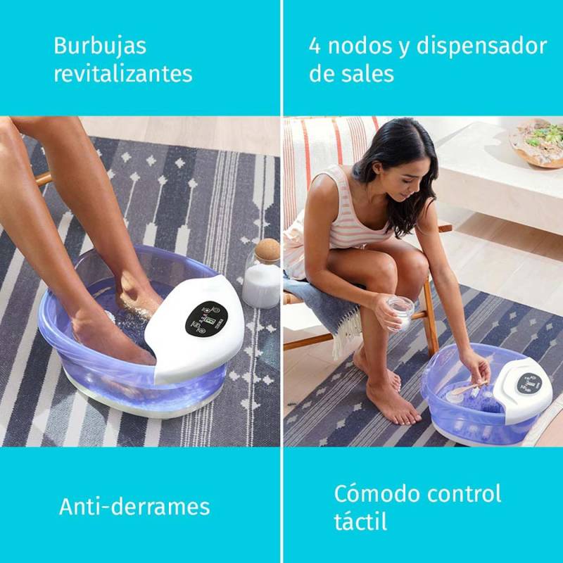 • Remojo calmante: disfrute de las burbujas y las sales de remojo juntas para el mejor día de spa en el hogar; las suaves burbujas y el masaje vibratorio alivian los pies fatigados; cuenta con dispensador de sal de remojo para sus sales de baño favoritas • Calienta el agua: la tecnología de calentamiento de agua calienta el agua en minutos, para un baño prolongado y lujoso. • Fácil de usar: los controles táctiles le permiten ajustar la configuración con facilidad mientras está sentado; el protector contra salpicaduras integrado ayuda a prevenir salpicaduras y derrames cuando lleva su spa para pies hacia y desde el grifo • Mejore su experiencia: personalice su remojo con 4 rodillos de masaje manuales y un kit de inicio de sal incluido. • Contenido de la caja: (1) Baño para pies Salt-N-Soak de HoMedics® con refuerzo de calor, (1) kit de inicio de sal adicional