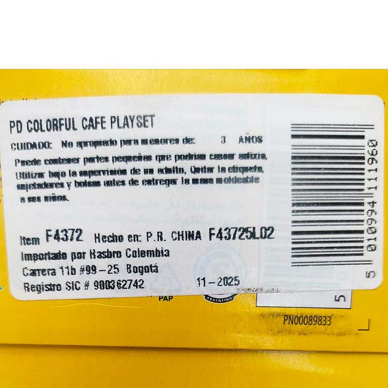 Kit Cafeteria Play Doh Con / Plástico / Juguete. Multicolor. Ideal para estimular la creatividad, habilidades motoras, concentración y coordinación manual de tus niños. Componentes: (En plástico + arcilla). - Arcilla - 1 tasa / Pocillo de oreja. - 1 cuchara. - 2 envases con tapa y pitillo de plástico. - 1 vaso de plástico. Recomendaciones: *Edad Sugerida: + 3 Años. *No es adecuado para menores de 3 años o 36 meses. *Utilizar bajo la supervisión de un adulto. * Producto contiene partes pequeñas, no ingerir.