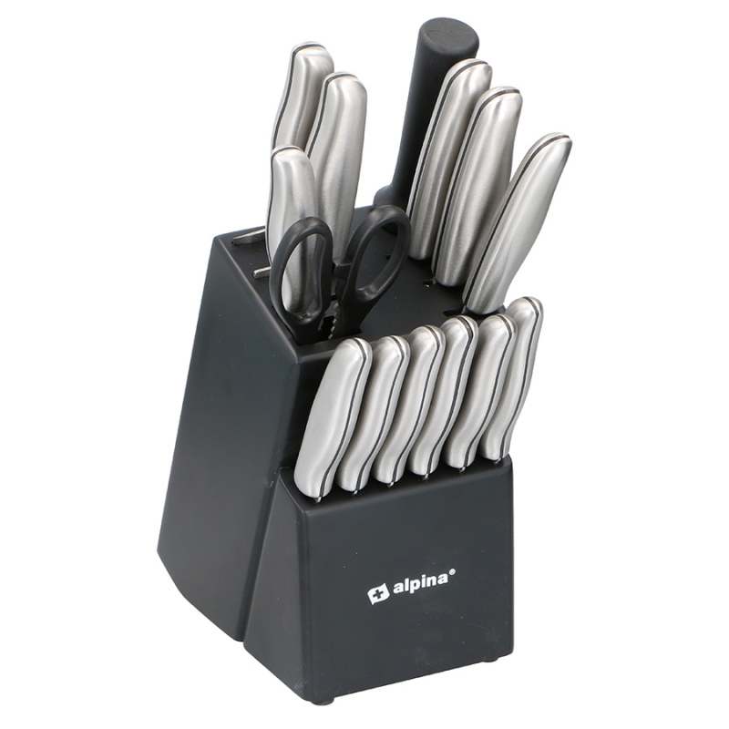 CocinaCuchillos Y TijerasTaco CuchillosTaco+Cuchillos Alpina 15Cm Negro Plateado 15 Pz Acero Inoxidable