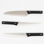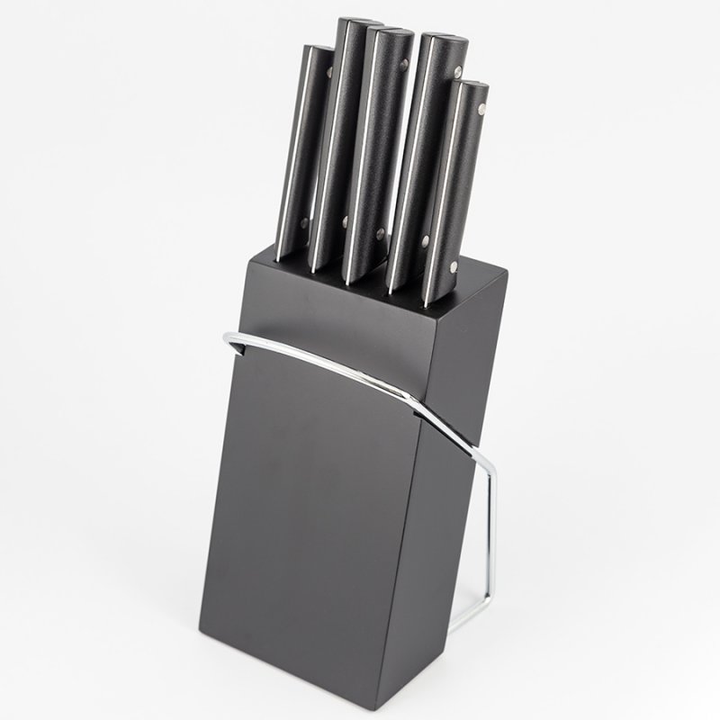 Con este completo juego de cuchillos estarás a un paso de convertirte en profesional de la cocinaLos productos Expressions combinan funcionalidad y diseño para hacer extraordinarios tus momentos en la cocina. En esta ocasión, te presentamos este juego de cuchillos profesionales con el que podrás estimular tu creatividad culinaria. • Acero inoxidable de alta calidad • Liviano y fácil de manejar • Mango suave y de fácil agarre • Práctico y elegante taco para colocar los cuchillos en forma segura y accesible Incluye: • 5 cuchillos • Taco porta cuchillos