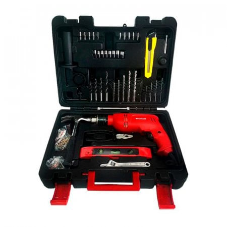 El taladro percutor TC-ID 650 E Kit, es un equipo versátil, que sirve de gran ayuda a los aficionados del bricolaje en sus trabajos en casa, en el taller y en el garaje. Con las funciones de perforación y percusión, así como la rotación hacia la derecha y hacia la izquierda para taladrar y atornillar, es una herramienta útil para todos los trabajos de perforación con martillo. En el práctico mandril sin llave, las diferentes herramientas de perforación se pueden colocar rápidamente y sin herramientas. A través de la electrónica de control de velocidad incorporada se puede seleccionar previamente y medir con precisión el número de revoluciones de la máquina perforadora. El tope de profundidad de metal estable y de precisión ajustable garantiza una profundidad de perforación consistente para la perforación en serie. Para un funcionamiento continuo, puede bloquearse además el interruptor de control.