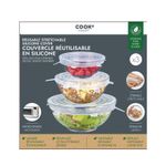 Tapa cook concept setx3 en silicona elásticas redondas kb5938. ¡Cambie de hábitos y opte por estas tapas flexibles de silicona reutilizables!. Este lote de 3 tapas le permitirá guardar sus recipientes o cubrir sus alimentos con toda tranquilidad. 3 tamaños: 14,5 cm / 16,5 cm / 20,5 cm / transparente 100 % elastómero.