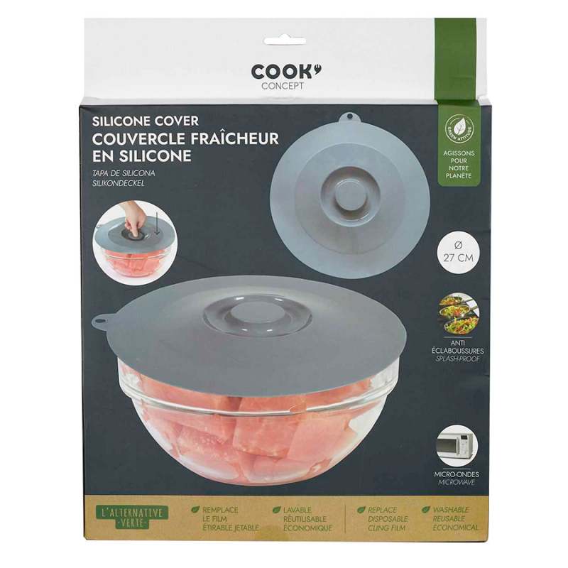 Tapa cook concept 27 cm hermética en silicona surtida kb6080. ¡Cambie de hábitos y opte por las tapas flexibles de silicona reutilizables!, esta tapa le permitirá conservar sus alimentos con total tranquilidad gris 100 % elastómero. Los productos marcados como 'producto surtido' pueden no ser idénticos a los que aparecen publicados en las imágenes, las imágenes son ilustrativas, al comprar un producto identificado como producto surtido, aceptas que podrás recibir un producto con características y atributos tangibles diferentes a los que aparecen en las imágenes del sitio o la publicidad, los productos surtidos mantendrán las propiedades físicas, químicas y técnicas necesarias para su funcionamiento y uso de acuerdo a su naturaleza.