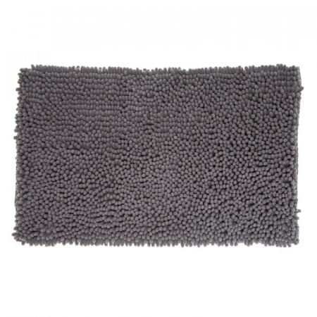 Tapete de baño tipo chenile, elaborado en poliester , color gris. Dimensiones: 50x80cm