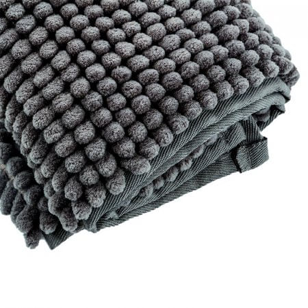 Tapete salida ducha, elaborado 100% poliester, color gris, este brinda mayor absorción del agua y tiene superficie de copos con mayor comodidad. Te brindará confort en los pies. Dimensiones: 80x50cm