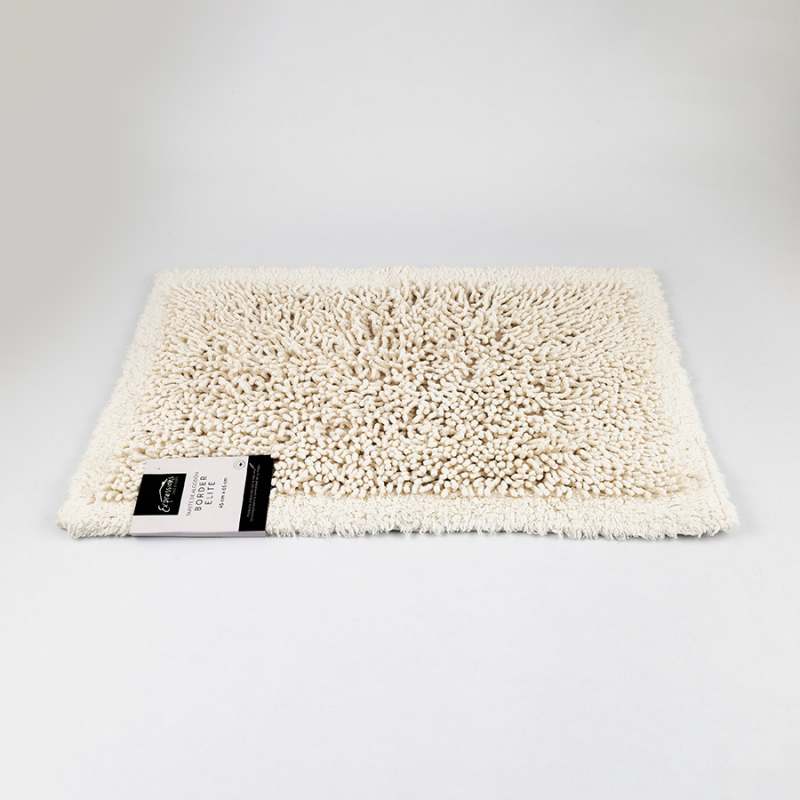 Tapete de baño de 45 cm x 65 cm, color blanco, material 100% algodón, diseño elegante tipo Border Elite, ideal para brindar confort.