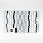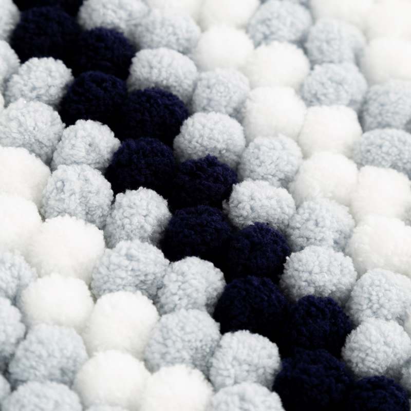 Tapete de baño en color azul, fabricado en poliéster, con dimensiones de 80x50 cm, resistente y fácil de mantener.
