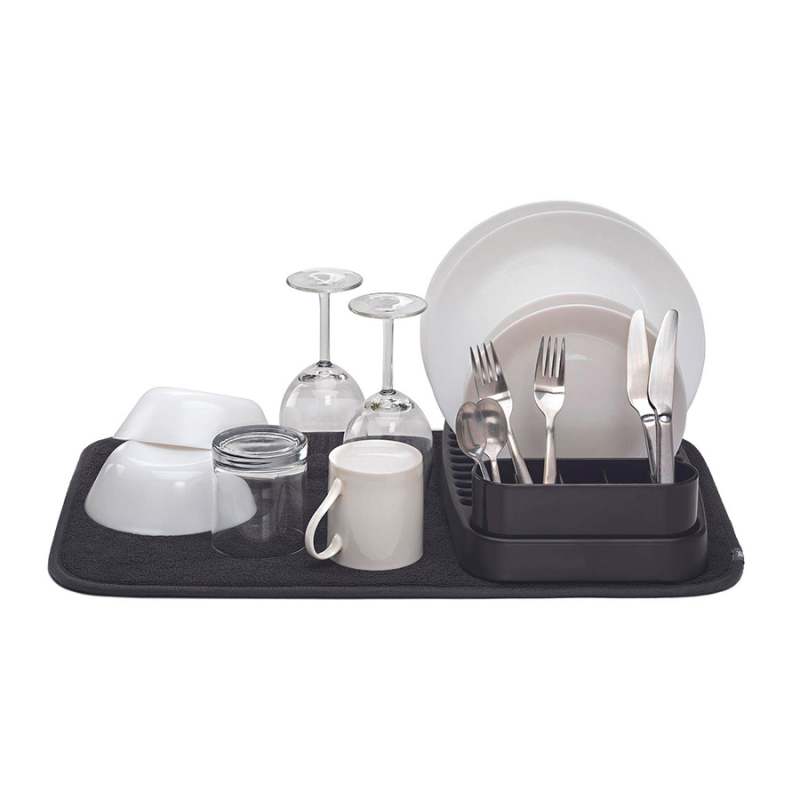 Estación de secado Tapete de microfibra con utensilio para acomodar platos y cubiertos. Mantiene las superficies de tu cocina limpias y organizadas.