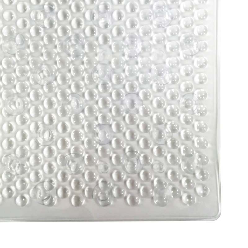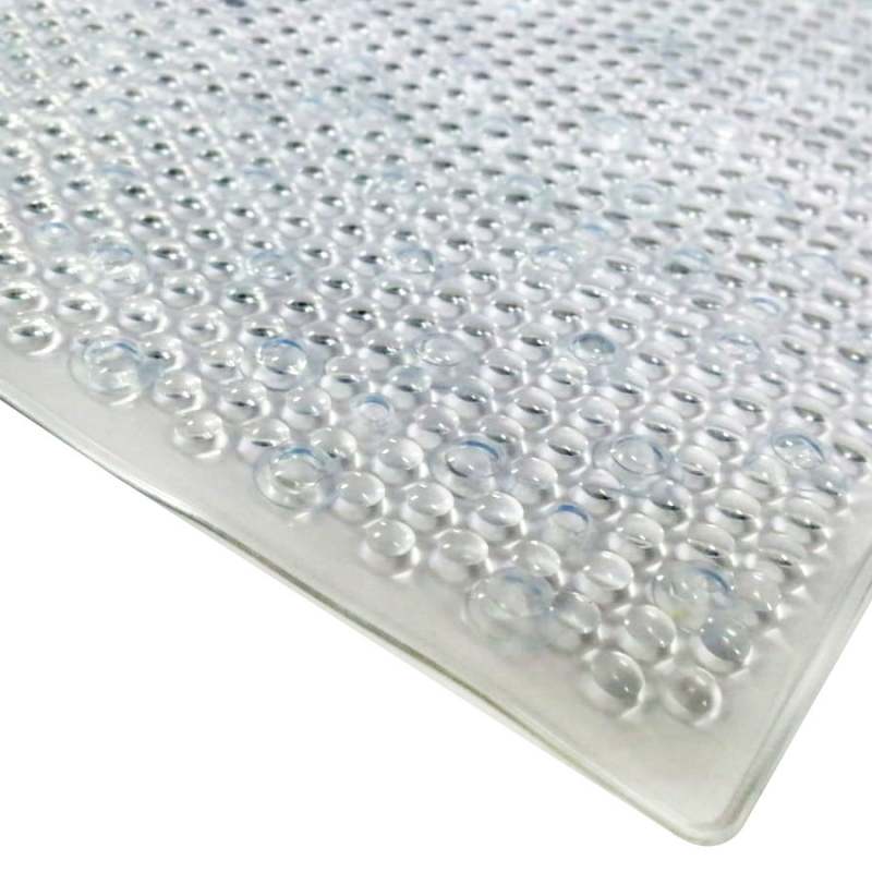 Tapete Expressions Antideslizante 3D Cu 54x54 cm Transparente, fabricado en PVC. Este tapete cuenta con un diseño antideslizante que incluye cientos de ventosas, asegurando una adherencia firme al piso y evitando caídas