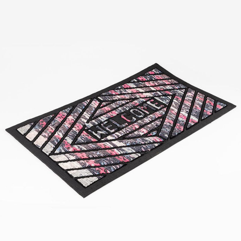 Tapete para entrada en caucho, multicolor, diseño de rombos. Es atrapa polvo, resistente y duradero. Dimensiones: 40x70cm