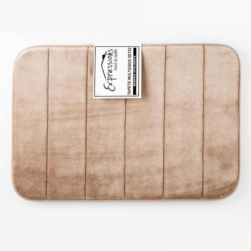 Tapete memory foam color taupe, super absorbente, antideslizante, seca dos veces mas rapido que cualquier otra alfombra de baño, lavable a maquina, no usar blanqueador o suavizante, puede usar secadora, no usar plancha. Dimensiones: 43x61m